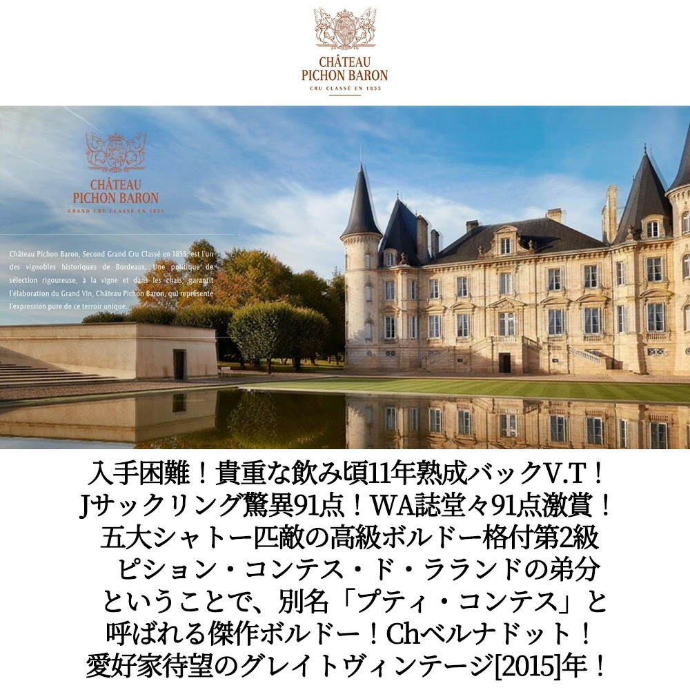 ピション・コンテス・ドゥ・ラランドの弟分ということで、別名“プティ・コンテス”と呼ばれる傑作ボルドー!