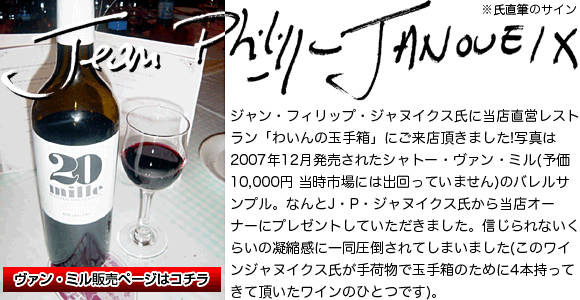 ジャン・フィリップ・ジャヌイクス氏の手によって造られたこの限定生産のボルドーは、傑作として称賛されている。