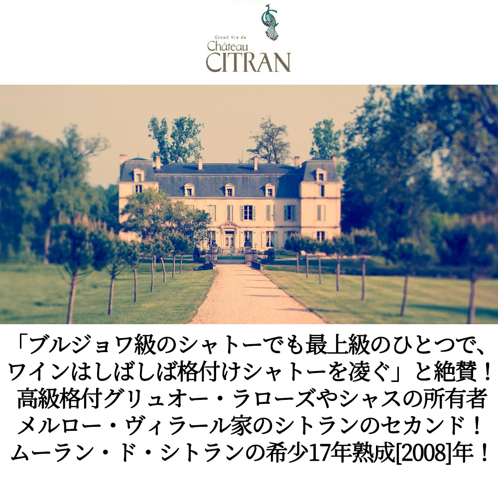 シャトー・シトランよりは幾分ライトな味わいですが、熟した果実味に、十分なタンニンによるコクがありながら、しなやかな舌触りが楽しめる素晴らしいバランス!