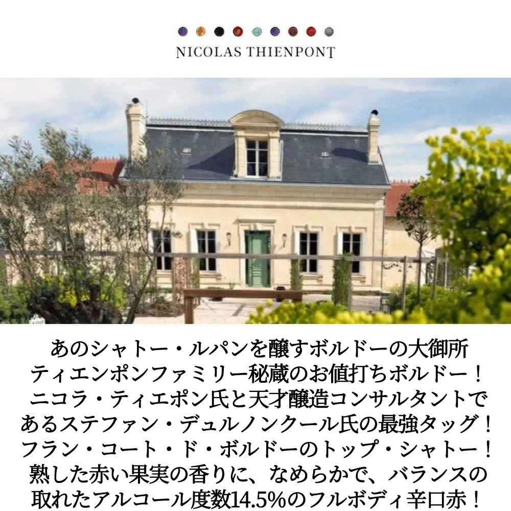 濃いガーネット色!熟したブラックチェリーやプラムを思わせる凝縮感のある果実香が中心で、ほのかにスミレやスパイスのニュアンスも感じられます!口当たりはなめらかで、メルロ100%らしい丸みのある質感が特徴!タンニンはきめ細かく、若々しさを残しつつもバランスが良く、適度な酸が全体を引き締めます!余韻にはカカオやほのかな樽香が穏やかに続き、親しみやすさと程よい骨格を兼ね備えたスタイル!パヴィ・マカンを復活させたニコラ・ティエンポンとドゥルノンクールのタッグはここでも健在です!