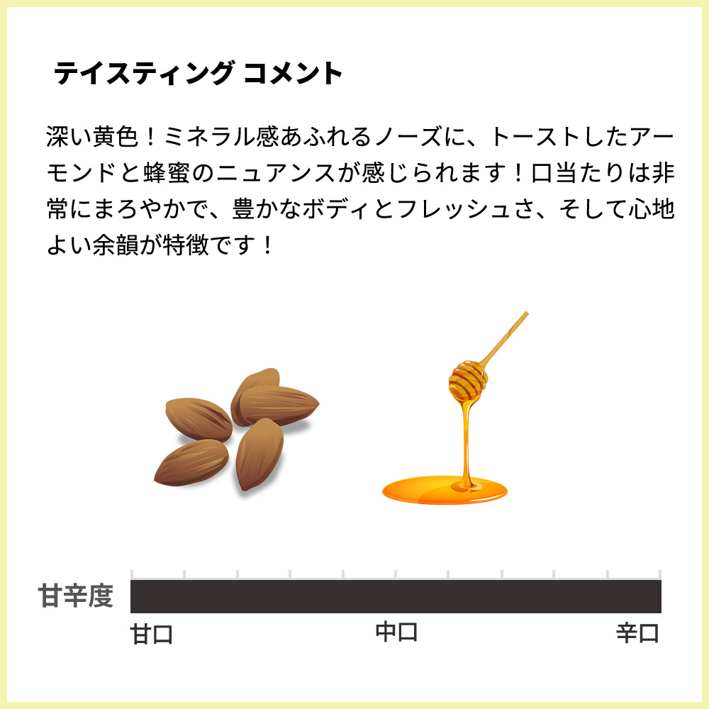 このレ・トリュフィエール・ド・テューレイ・シャルドネはローストしたアーモンド、蜂蜜、サンザシのアロマが広がります!深い黄色!ミネラル感あふれるノーズに、トーストしたアーモンドと蜂蜜のニュアンスが感じられます!口当たりは非常にまろやかで、豊かなボディとフレッシュさ、そして心地よい余韻が特徴です!