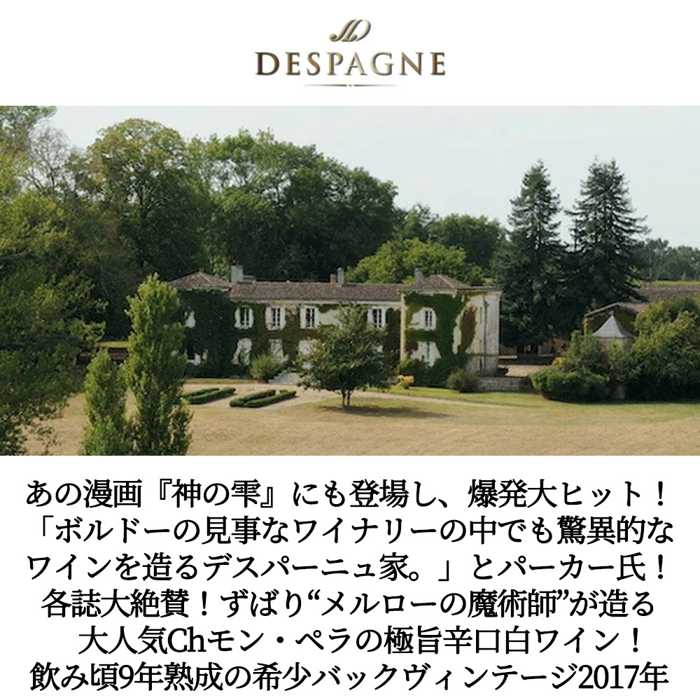 ロバート・パーカー氏は4つ星生産者に挙げ、「ボルドーの見事なワイナリーの中でも驚異的なワインを造るデスパーニュ家。まだ名前の知られていない最高のボルドーワイン」と絶賛させ、ドイツのワイン誌でシャトー・マルゴーやシャトー・ラフィット・ロートシルトの格付第一級より高評価を受けた驚異のワイン!