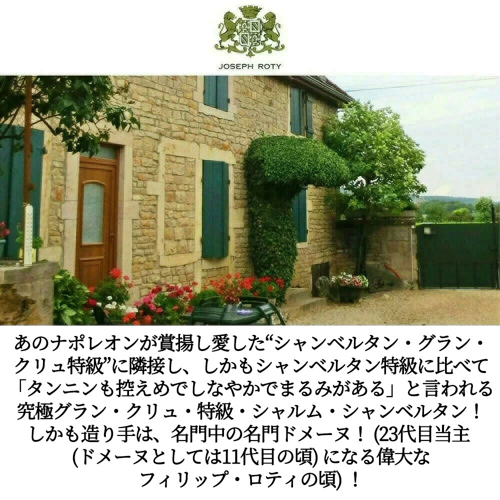 造り手は、現当主で23代目 (ドメーヌとしては11代目) になる、ジュヴレ・シャンベルタン村の名門中の名門ドメーヌ!ドメーヌ・ジョセフ・ロティ!