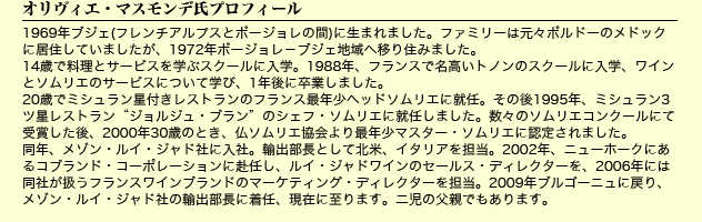 【醸造、熟成】 『セミ・カーボニック・マセレーション』と呼ばれる方法で醸造します。これはボージョレ地域で通常カーボニック・マセレーションとして行われている密閉タンクへの二酸化炭素の注入はせず、自然発生する二酸化炭素を利用します。このようなセミ・カーボニック・マセレーションを用いているため二酸化炭素環境下に置かれる時期が異なり、特別なバナナなどの香りが強調されすぎる事が少なく、味わい深さが増します。また、ルイ・ジャド社プリムールの特長として、一般的なカーボニック・マーセレーションよりも比較的発酵開始温度を高く(一般のものは20℃以下)、また、タンク内に置く時間も長く設定し、ガメイ種の色や、その品種独自の特長的な香りをより引き出すようにしています。