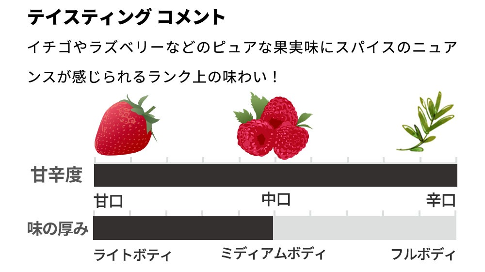【醸造、熟成】 『セミ・カーボニック・マセレーション』と呼ばれる方法で醸造します。これはボージョレ地域で通常カーボニック・マセレーションとして行われている密閉タンクへの二酸化炭素の注入はせず、自然発生する二酸化炭素を利用します。このようなセミ・カーボニック・マセレーションを用いているため二酸化炭素環境下に置かれる時期が異なり、特別なバナナなどの香りが強調されすぎる事が少なく、味わい深さが増します。また、ルイ・ジャド社プリムールの特長として、一般的なカーボニック・マーセレーションよりも比較的発酵開始温度を高く(一般のものは20℃以下)、また、タンク内に置く時間も長く設定し、ガメイ種の色や、その品種独自の特長的な香りをより引き出すようにしています。