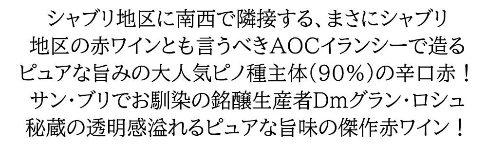 ブルゴーニュ北東部・シャブリ地区に南西で隣接する、まさにシャブリ地区の赤ワインとも言うべきAOCイランシーで造られるピュアな旨みの人気ピノ・ノワール種主体(90%)の辛口赤ワイン(フランス北東部ブルゴーニュ地方ヨンヌ県、シャブリ地区の南西に隣接するワイン産地!この地区のピノ・ノワール種を主体とした赤ワインに認められたAOCがこのイランシーです!
