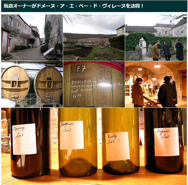 高名な醸造家オベール ド ヴィレーヌ氏のドメーヌ。氏はドメーヌ ド ラ ロマネ コンティの経営を継ぐ前に父親から「自分のドメーヌを持ち、ドメーヌのワイン作り、ドメーヌ経営を学ぶように」という指示を受けており、フランスに戻って1971年に始めたのが「ドメーヌ ド ヴィレーヌ」。 現在ドメーヌではオベール ド ヴィレーヌ氏の甥(サンセールのドメーヌ デュ ノゼに嫁いだ マリー・エレーヌ夫人の息子)にあたるピエール ド ブノワ氏が運営の主体を担っています。