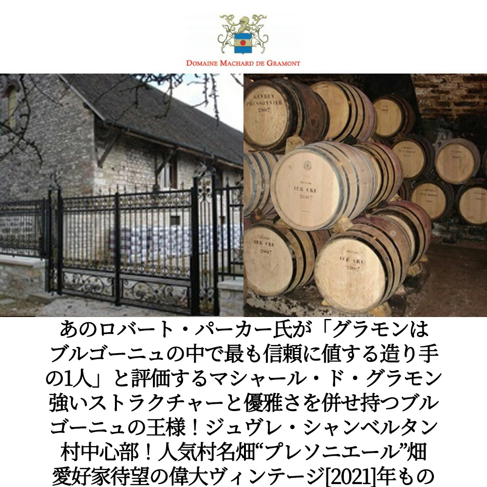 造り手は、あのロバート・パーカー氏に「グラモンはブルゴーニュの中で最も信頼に値する造り手の一人と言える」と激賞させ、M.W.のブルゴーニュの大御所セレナ・サトクリフ女史も高評価!