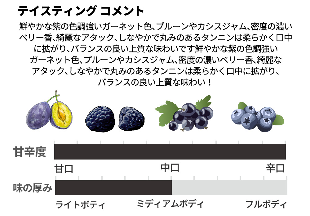 ■発酵・熟成:全房で20日間低温で醸し後プレス、ステンレスタンクで発酵/ 木樽で19ヶ月熟成後ステンレスタンクで1ヶ月追熟
