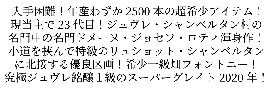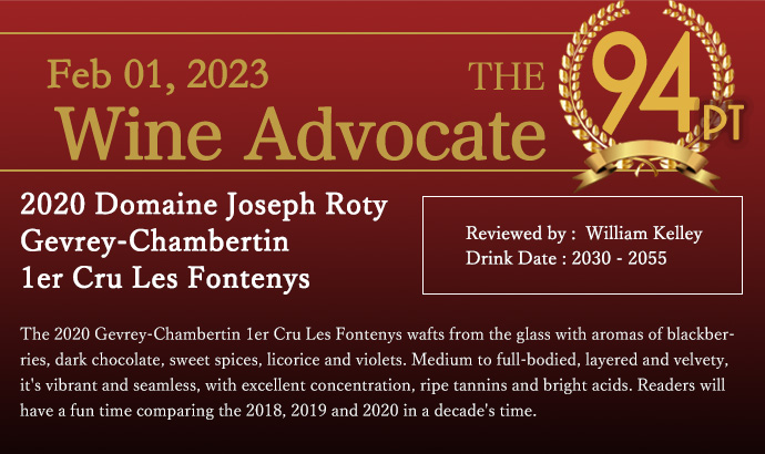 カシスやリコリス、カカオの香りに香ばしい新樽のニュアンスが良いアクセントになっており、壮大な構成が楽しめる、スケール感のある最高級ジュヴレ・シャンベルタン・プルミエ・クリュ・レ・フォントニーが蔵出しで限定で極少量入荷!