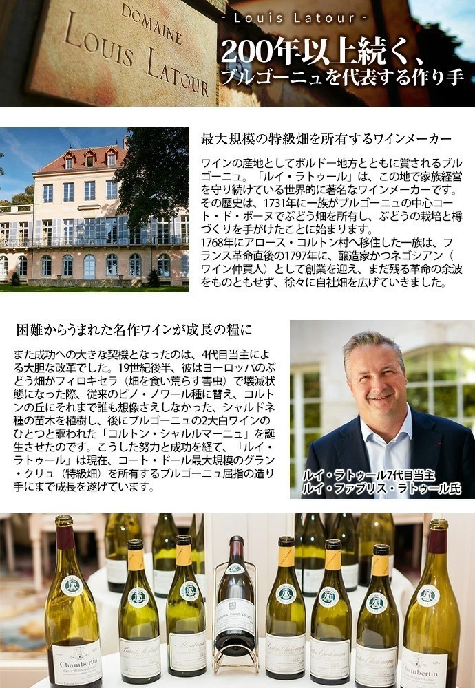 わずか0.8haの畑の平均樹齢30年以上のブドウを低収量30hl/haで手摘み100%で収獲!ミディアムローストのフレンチオーク樽100%の新樽100%(しかもルイ・ラトゥールの自社樽100%)!