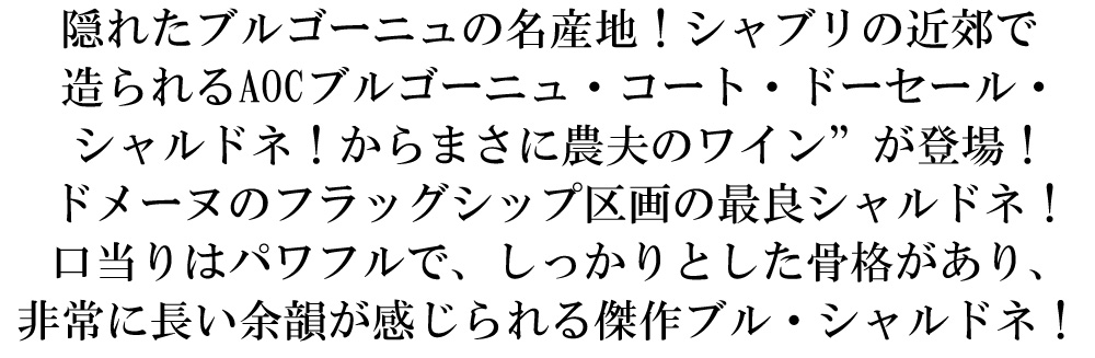 希少!ブルゴーニュ辛口白ワイン愛好家大注目!隠れたブルゴーニュの名産地!シャブリの近郊で造られるAOCブルゴーニュ・コート・ドーセール・シャルドネ!