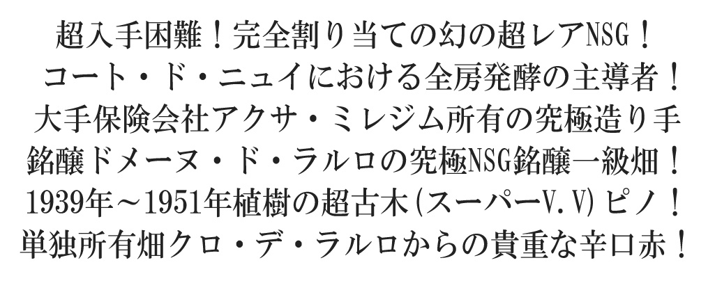 ![ニュイ サン ジョルジュ プルミエ クリュ ー級“クロ デ ラルロ モノポール ルージュ[2021]年 蔵出し限定品 ドメーヌ ド ラルロ元詰](http://r-asp17.item-robot.com/upload/images/1685/default/11/10/0102021047795.jpg)