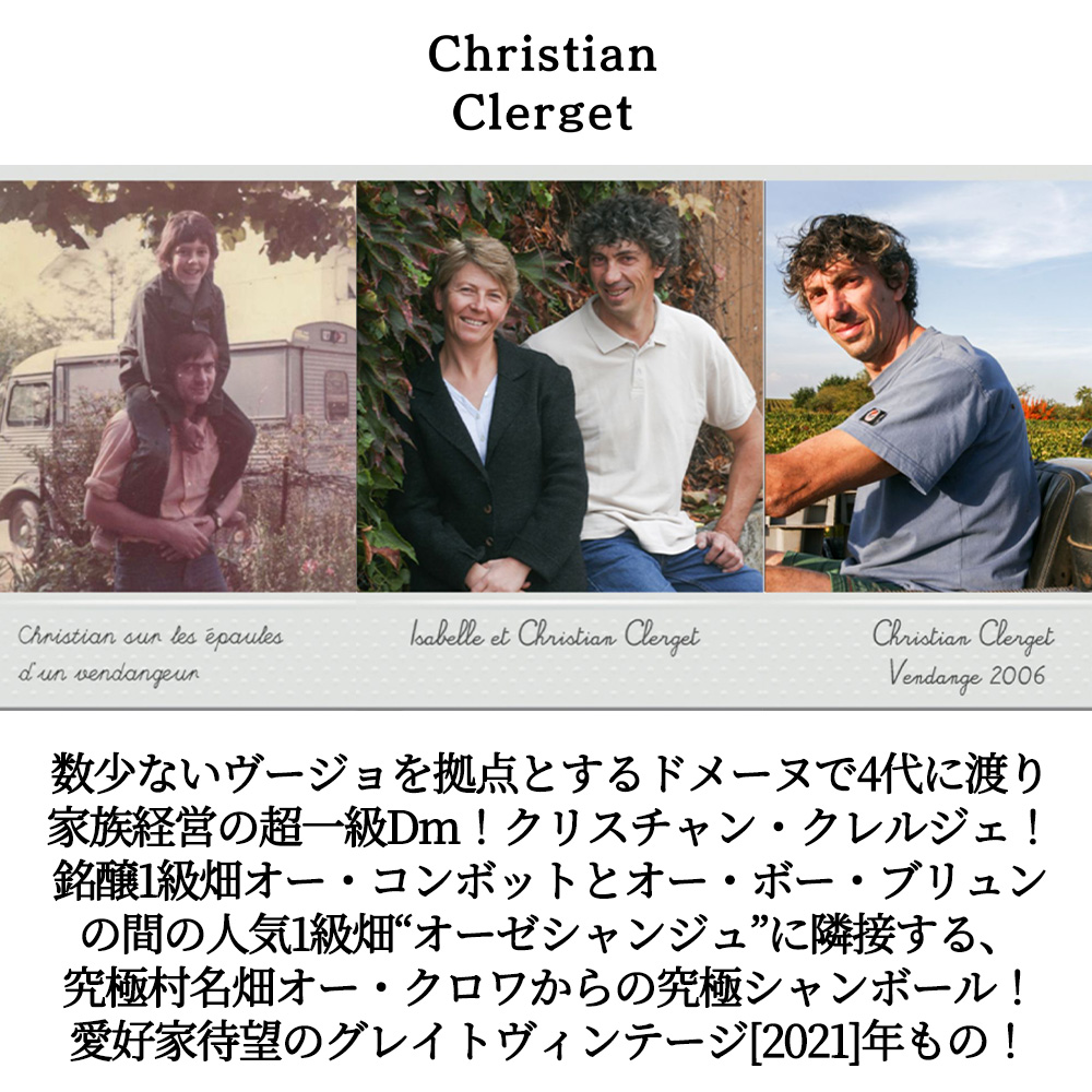 フランス高級銘醸ブルゴーニュ辛口赤ワイン愛好家大注目!超一級ドメーヌとして有名なドメーヌ・クレルジェ!からシャンボール・ミュジニー・オー・クロワ[2021]年がついに入荷!