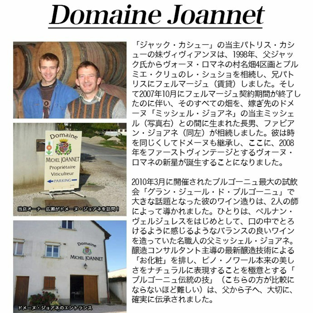 造り手のドメーヌ・ジョアネは、ブルゴーニュの名門ワイナリーの一つで、ファビアン・ジョアネが醸造を手掛けている。