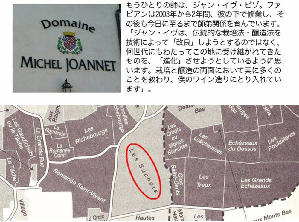 彼は、ペルナン・ヴェルジュレスなどの名手に師事し、バランスの良いワイン造りを学んでいる。このワインは、ブルゴーニュの生産者やワイン関係者からも高い評価を得ている。