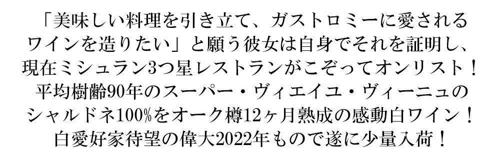 大人気ブルゴーニュ辛口白ワイン愛好家大注目!なんと!平均樹齢90年のスーパー・ヴィエイユ・ヴィーニュのシャルドネ100%の傑作辛口白ワイン!