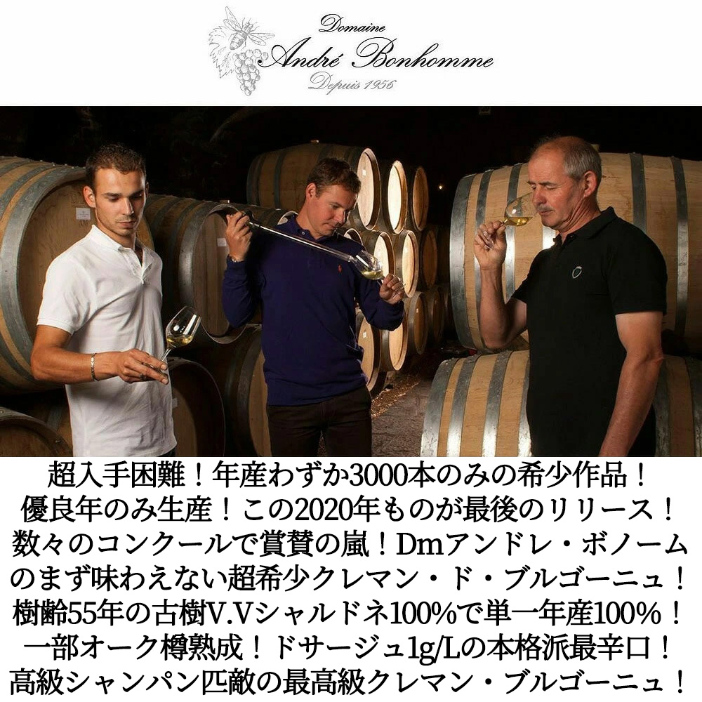 入手困難!年産わずか3000本の希少アイテム!高級シャンパーニュ愛好家大注目!シャンパーニュ地方で造られる高級シャンパン2次発酵方式のAOCクレマン・ド・ブルゴーニュ辛口愛好家大注目!高級ブルゴーニュ産シャンパン方式辛口クレマンファン大注目!高級AOCクレマン・ド・ブルゴーニュ!シャンパンと同じ製法の辛口クレマン!日本でもまず味わえない待望のドメーヌ・アンドレ・ボノームの高級クレマン・ド・ブルゴーニュ!しかも単一年産100%のミレジメもの!