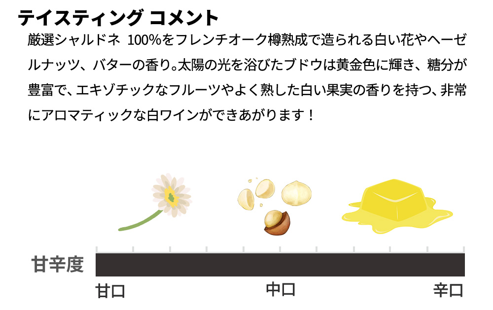 太陽の光を浴びたブドウは黄金色に輝き、糖分が豊富で、エキゾチックなフルーツやよく熟した白い果実の香りを持つ、非常にアロマティックな白ワインができあがります!