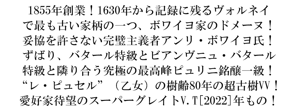 ロバート・パーカー氏が、バイヤーズの中で最高評価★★★★★満点5つ星をつける人気ドメーヌ・アンリ・ボワイヨの元詰めの白!
