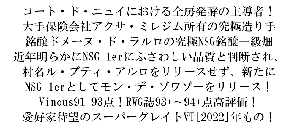 ずばり銘醸ラルロのキュヴェ・モン・デ・ゾワゾーの見事なニュイ・サン・ジョルジュ一級!