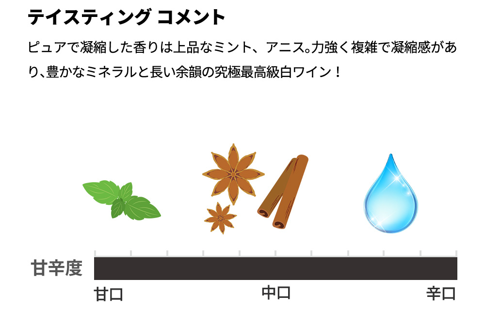 ピュアで凝縮した香りは上品なミント、アニス。力強く複雑で凝縮感があり、豊かなミネラルと長い余韻の究極最高級白ワイン!しかも現地のセラー数ヶ月前の蔵出し作品で、しかも極少量生産で超入手困難な大人気グレイトヴィンテージ[2021]年希少ヴィンテージが限定で正規品で極少量入荷!