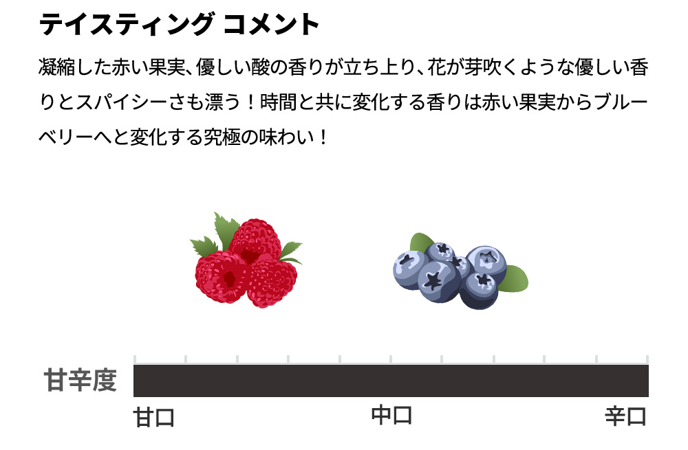 凝縮した赤い果実、優しい酸の香りが立ち上り、花が芽吹くような優しい香りとスパイシーさも漂う!時間と共に変化する香りは赤い果実からブルーベリーへと変化する究極の味わい!ブリチェックの究極シャンボール・ミュジニーのスーパーグレイトヴィンテージ[2022]年ものが限定少量入荷!