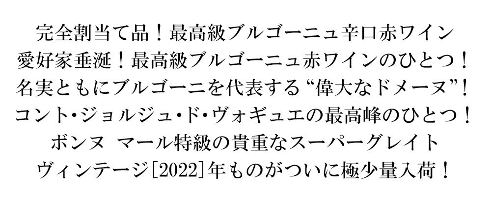 超入手困難!完全割当て品。最高級ブルゴーニュ辛口赤ワイン愛好家垂涎のヴォギュエの究極ボンヌ・マール特級が大人気スーパーヴィンテージ[2022]年で蔵出し限定作品で極少量入荷!