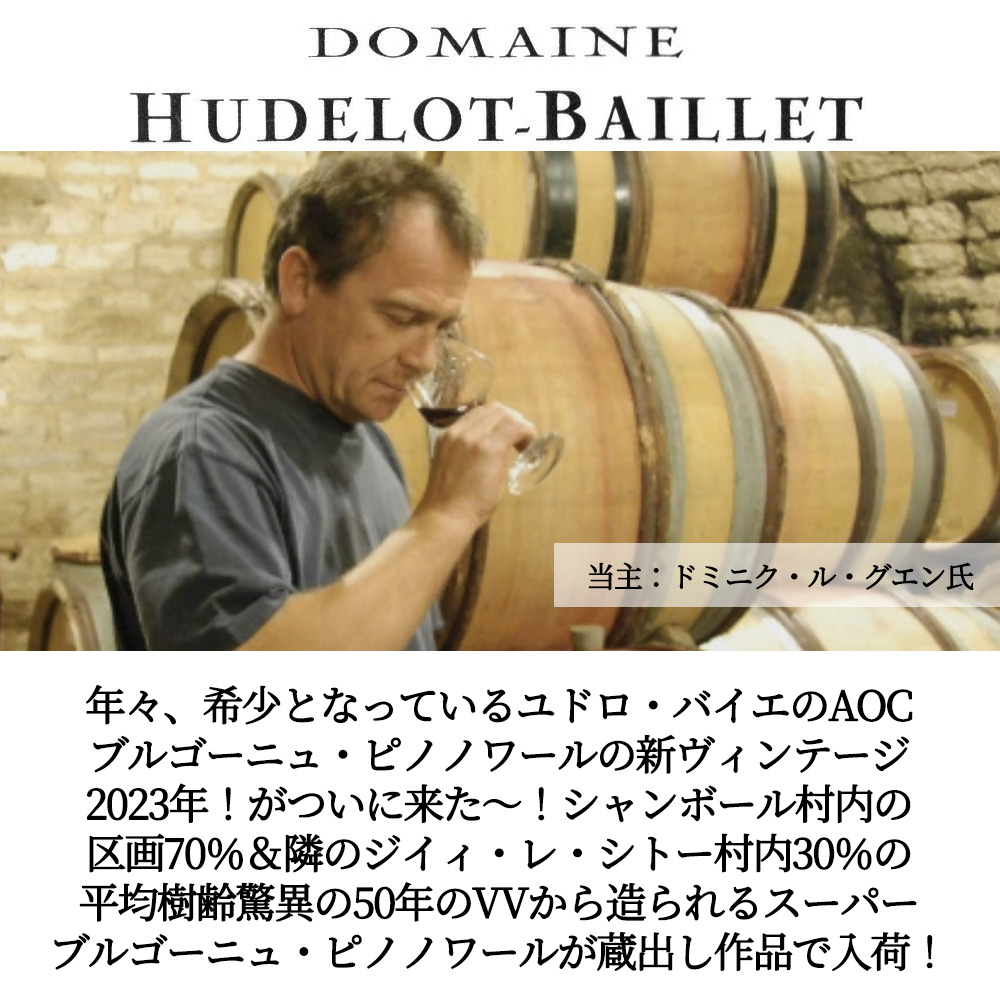 まさにシャンボール・ミュジニー村のテロワールの特徴をしっかり感じられる、ハイ・コスパ・ピノ赤!フランス国内のワイン愛好家に全生産量の80%が売り切れてしまう、大人気生産者ユドロ・バイエの究極AOCブルゴーニュ・ピノノワール100%が、最新の人気ヴィンテージで見事な品質!