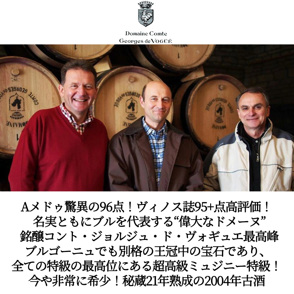 究極ミュジニー特級のV.V.が、今や入手困難な秘蔵21年熟成で希少ヴィンテージ[2004]年もので蔵出しで限定少量入荷!