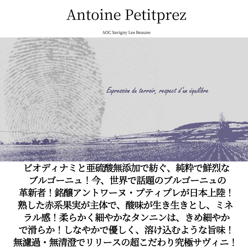 年産1460本のみの希少アイテム!ビオディナミと亜硫酸塩無添加で紡ぐ、純粋で鮮烈なブルゴーニュ!今、世界で話題のブルゴーニュの革新者!銘醸アントワーヌ・プティプレが遂に日本上陸!赤のサヴィニAOCの蔵出し限定品!