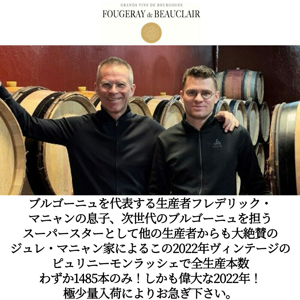 造り手はワイン愛好家垂涎!ブルゴーニュを代表する生産者フレデリック・マニャンの息子、次世代のブルゴーニュを担うスーパースターとして他の生産者からも大注目のジュレ・マニャン家が2021年にフージュレイ・ド・ボークレールが所有するすべての畑を購入!葡萄の栽培から親子で携わり、ワインの醸造、熟成はすべてモレ・サン・ドニにあるフレデリック・マニャンのドメーヌで行われています。