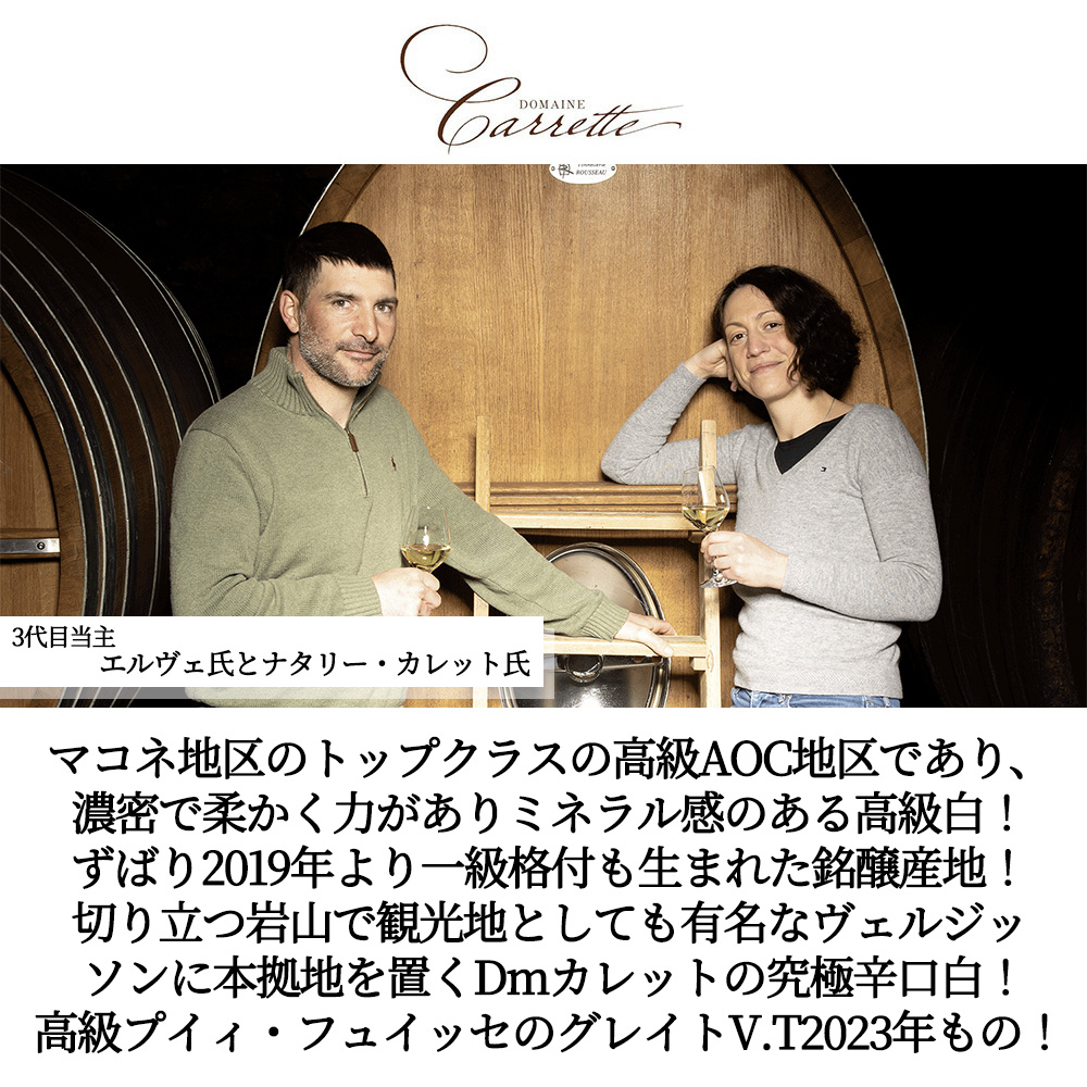 「マコン地区のトップクラスの高級AOC地区であり、濃密でやわらかく力がありミネラル感のあるワイン」「マコン地域で最良の辛口白ワイン!濃密で力強い傑出した辛口白はコート・ドールの最上のものと太刀打ちできる」と言われるプルミエ・クリュの格付も多数輩出の高級AOCプイィ・フュイッセ!