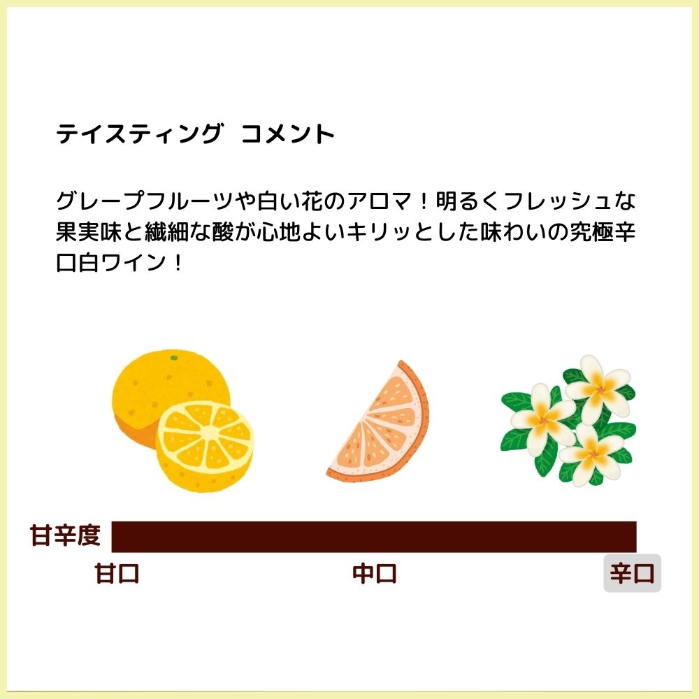 フレッシュな柑橘系のアロマに溢れ、綺麗な酸が全体を引き締める究極辛口白ワイン!粘土石灰質土壌のシャルドネ100%をステンレスタンクでシュールリーで6ヶ月熟成で造られる極旨白ワインは、青みを帯びた黄金色!