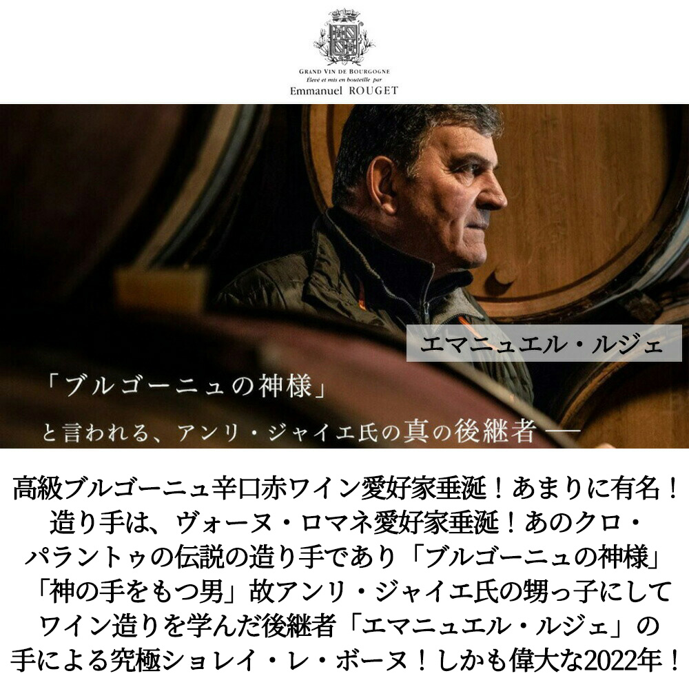 造り手は、ヴォーヌ・ロマネ愛好家垂涎!あのクロ・パラントゥの伝説の造り手であり「ブルゴーニュの神様」「神の手をもつ男」故アンリ・ジャイエ氏の甥っ子にしてワイン造りを学んだ後継者「エマニュエル・ルジェ」の手による究極ショレイ・レ・ボーヌ!