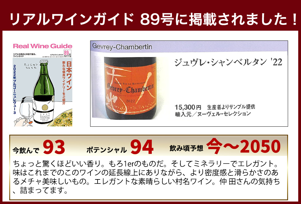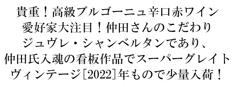 超貴重!仲田さんのこだわりジュヴレ・シャンベルタンのスーパーグレイトが少量入荷!