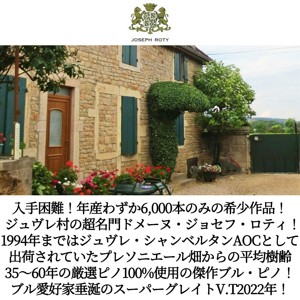 濃厚なチェリーのような風味に力強さと洗練さを兼ね備えたピュアな果実味たっぷりの旧ジュヴレ・シャンベルタンAOCの究極辛口赤ワインが、大人気スーパーグレイトヴィンテージ[2022]年で限定で極少量入荷!
