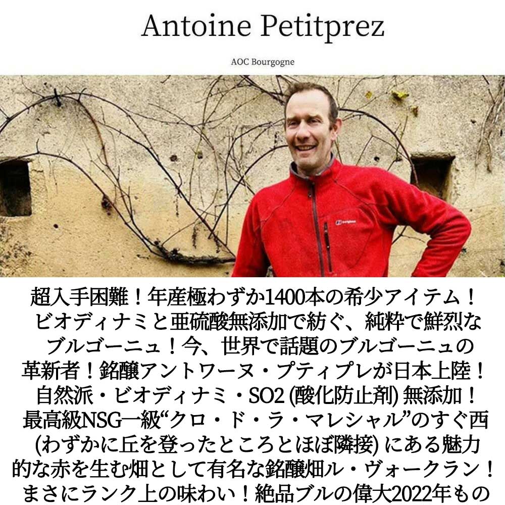 造り手はビオディナミ栽培による自然派ワインを生産する注目の生産者!アントワーヌ・プティプレ!