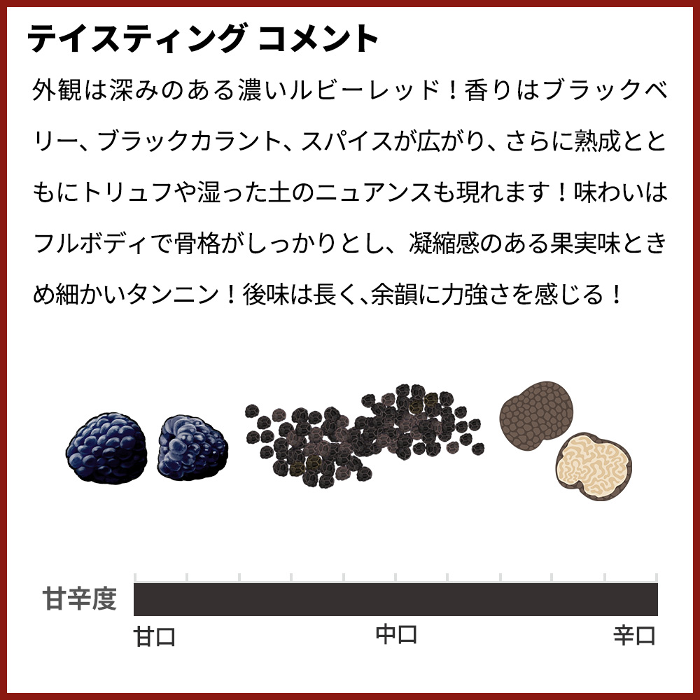 ■熟成:フレンチオーク樽12ヶ月熟成 (新樽比25%程度) とステンレスタンク8ヶ月熟成