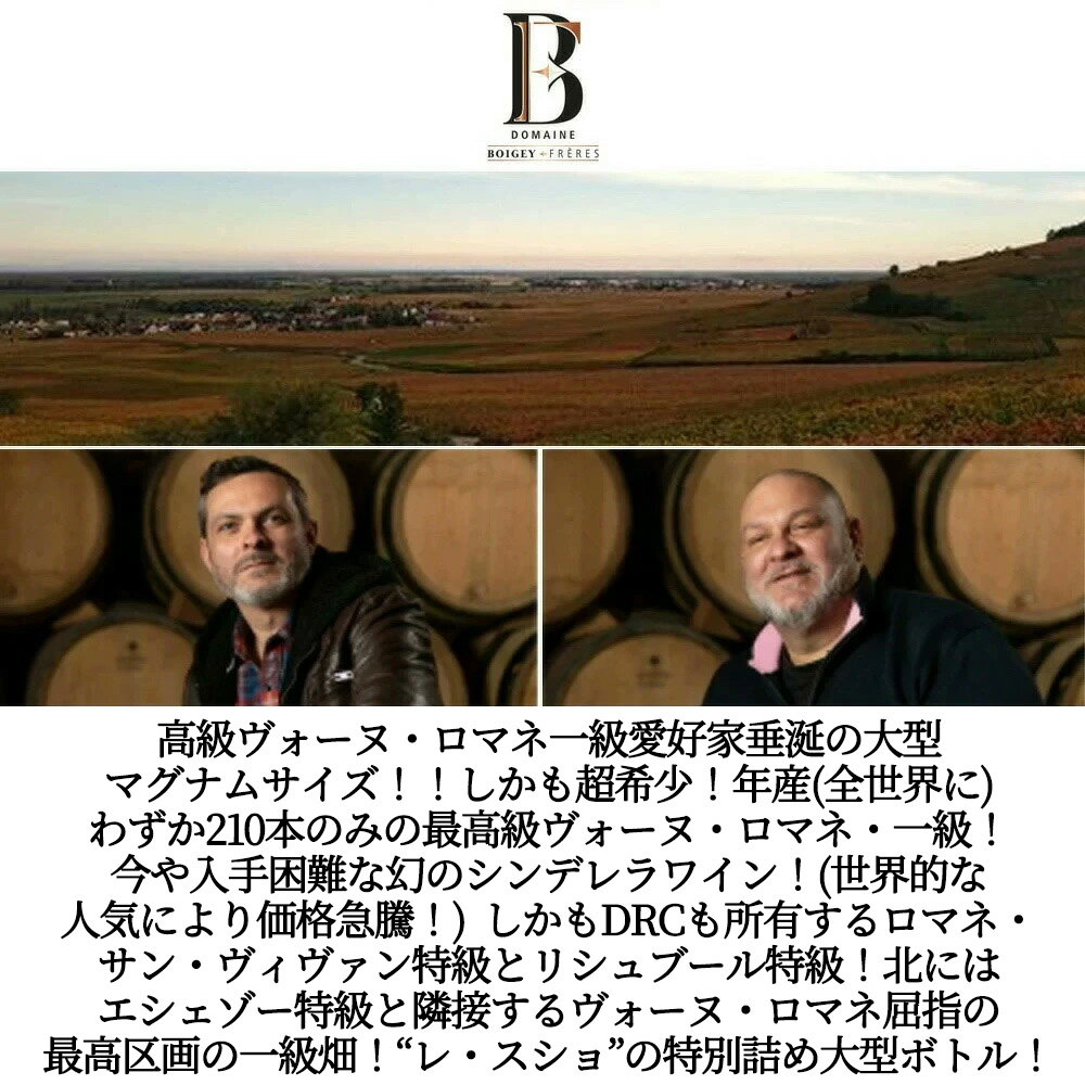 このヴォーヌ・ロマネ・一級レスショは、わずか0.68haの畑からの平均樹齢驚異の40-60年のVVのピノ・ノワール100%!収量は35hl/ha!ステンレスタンクでアルコール発酵後、新樽率50%でマロラクティック発酵&18ヶ月間樽熟成で造られる究極ヴォーヌ・ロマネ・プルミエ・クリュ・一級・レ・スショが記念すべきスーパーグレイトヴィンテージ[2023]年もので、しかも (全世界に) わずか210本のみ (日本への入荷わずか3本のみ!) の最高級ヴォーヌ・ロマネ・プルミエクリュ・一級!しかも現地のセラー数ヶ月前の蔵出し作品で限定で少量入荷!