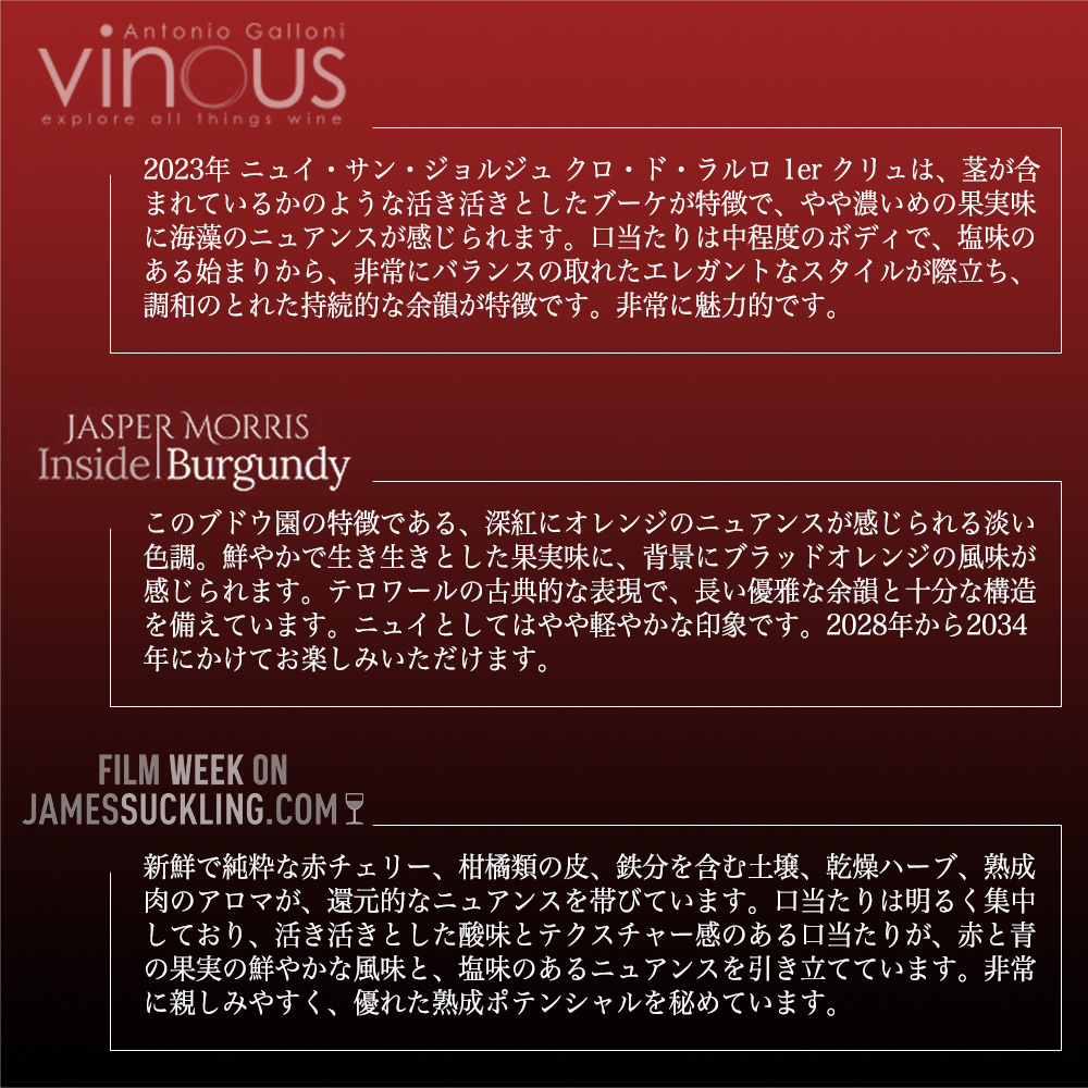 大手保険会社アクサ・ミレジム所有の究極造り手による単独所有畑 の大人気一級畑クロ・デ・ラルロ!