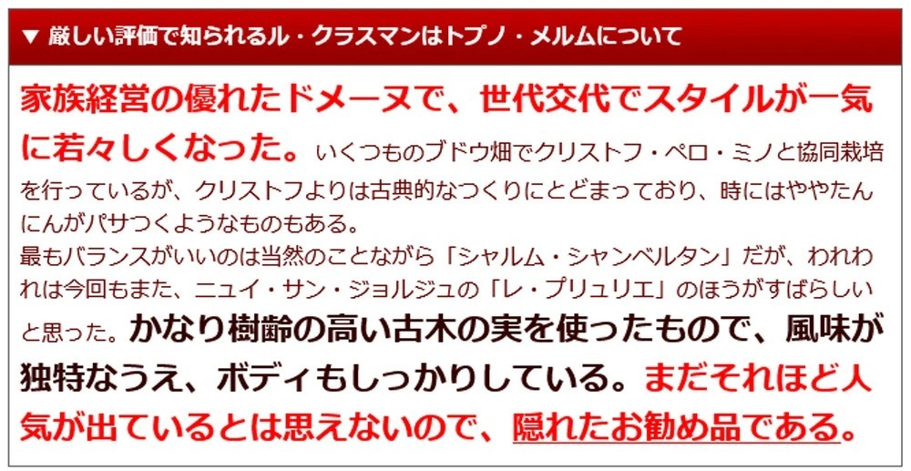 造り手は特級クロ・デ・ランブレイのもう一つの所有者であり、モレ・サン・ドニで7世代続く名門中の名門!トプノ・メルム家!