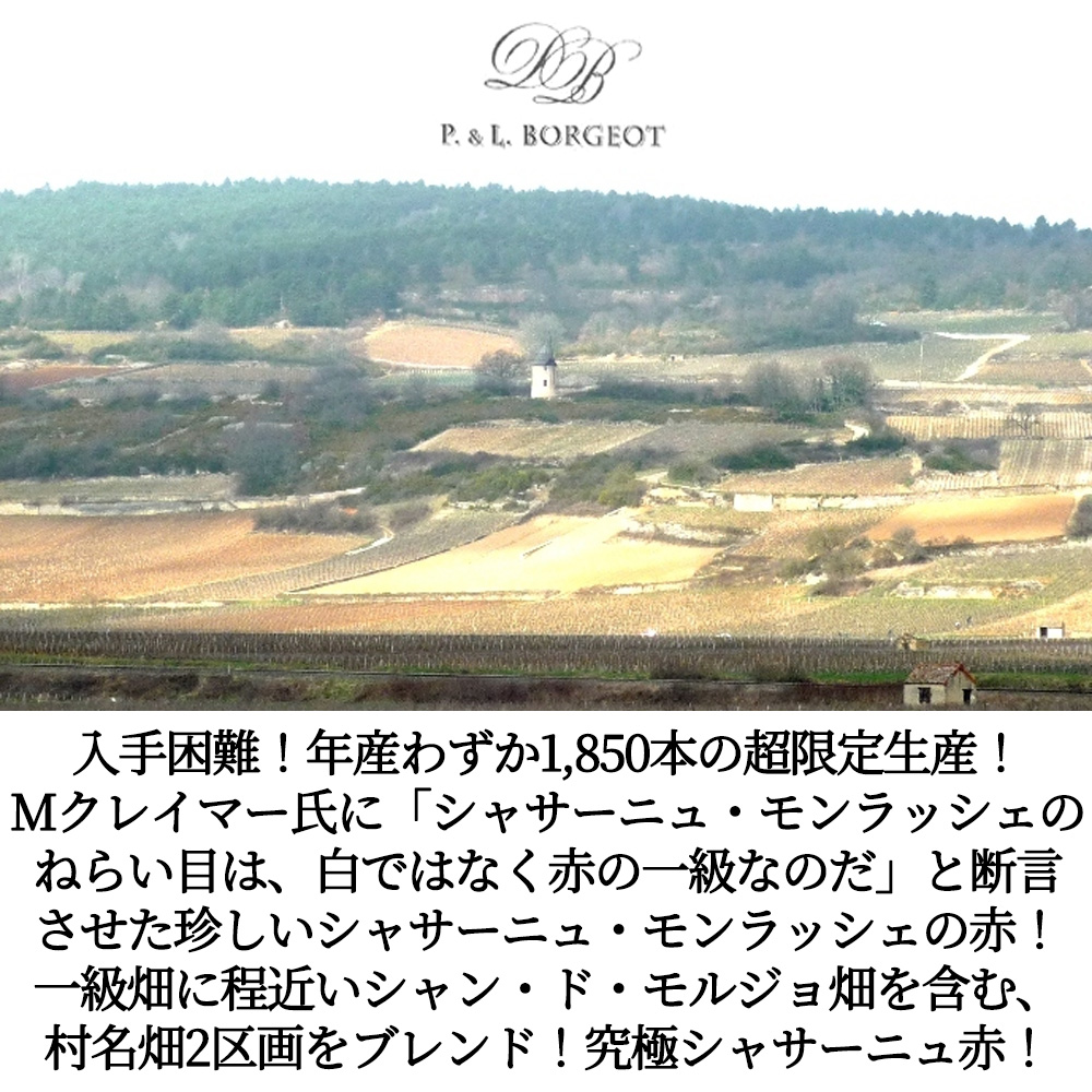 色が濃く、香りはサクランボの種やグリオット、キイチゴ、キルシュ(チェリーリキュール)を思わせ、熟成とともにスパイシーなブーケが出ると定評で大人気のシャサーニュ・モンラッシェ!