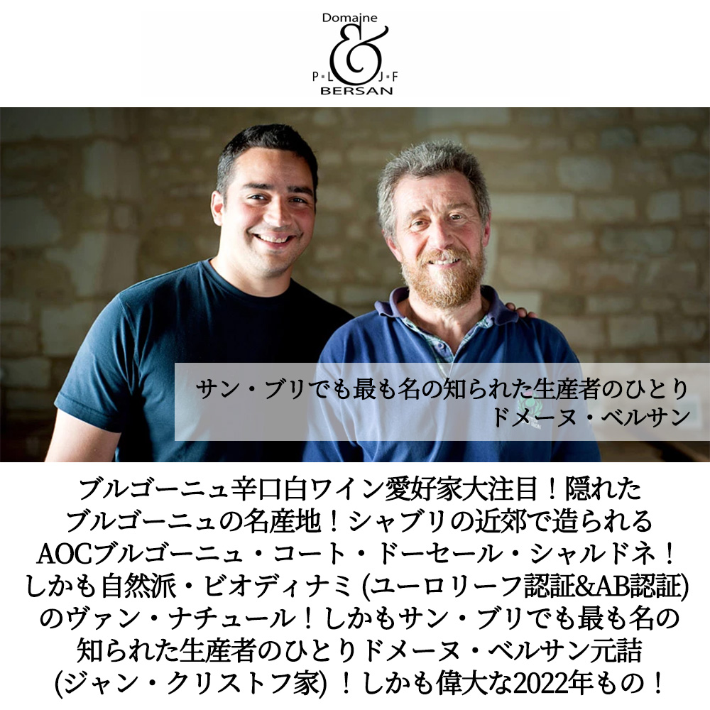造り手はアランメドウのバーガウンドやファルスタッフ誌も大注目!サン・ブリでも最も名の知られた生産者のひとりでありシャブリ、コート・ドーセール、サン・ブリ等に合計22haの自然派・ビオディナミ畑を所有のドメーヌ・ベルサン元詰白ワイン!