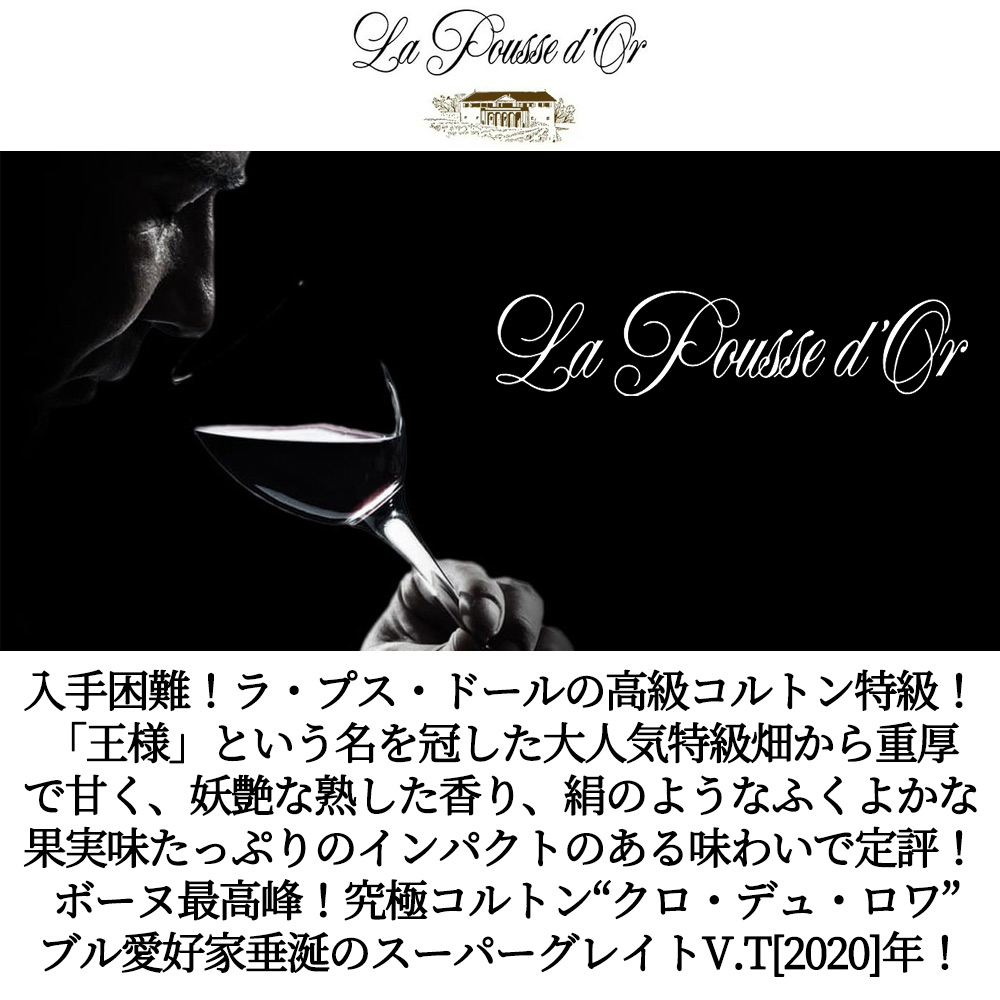 しかもコルトン特級ファン垂涎の「王様」という名を冠した大人気特級畑から重厚で甘く、妖艶な熟した香り、絹のようなふくよかな果実味たっぷりのインパクトのある味わい!マット・クレイマー氏をして「濃厚で張りがあり、パワー全開のコルトン」と言わしめた銘醸特級畑“クロ・デュ・ロワ”!