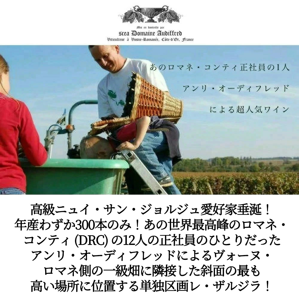 年産わずか300本のみ!あの世界最高峰のロマネ・コンティ (DRC) の12人の正社員のひとりだったアンリ・オーディフレッドによる、はりのあるストラクチャーの代表格!ニュイ・サン・ジョルジュAOC!ただし、ニュイ・サンジョルジュの中でも、ヴォーヌ・ロマネ側の一級畑に隣接した斜面の最も高い場所に位置する単独区画がこのアルジラ!