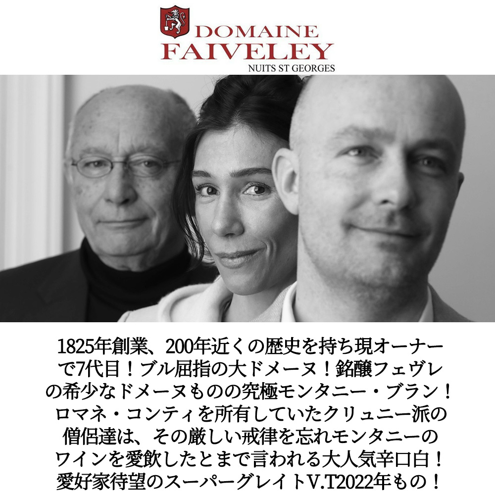 造り手は、1825年創業、200年近くの歴史を持ち現オーナーで7代目!ニュイ・サン・ジョルジュ本拠地のブルゴーニュ屈指の大ドメーヌでありネゴシアンとしてあまりに有名!「偉大なワインは偉大な畑から生まれる」の哲学のもと栽培への力の入れ方は特筆に値すると言われる大人気造り手であるフェヴレのドメーヌもの!