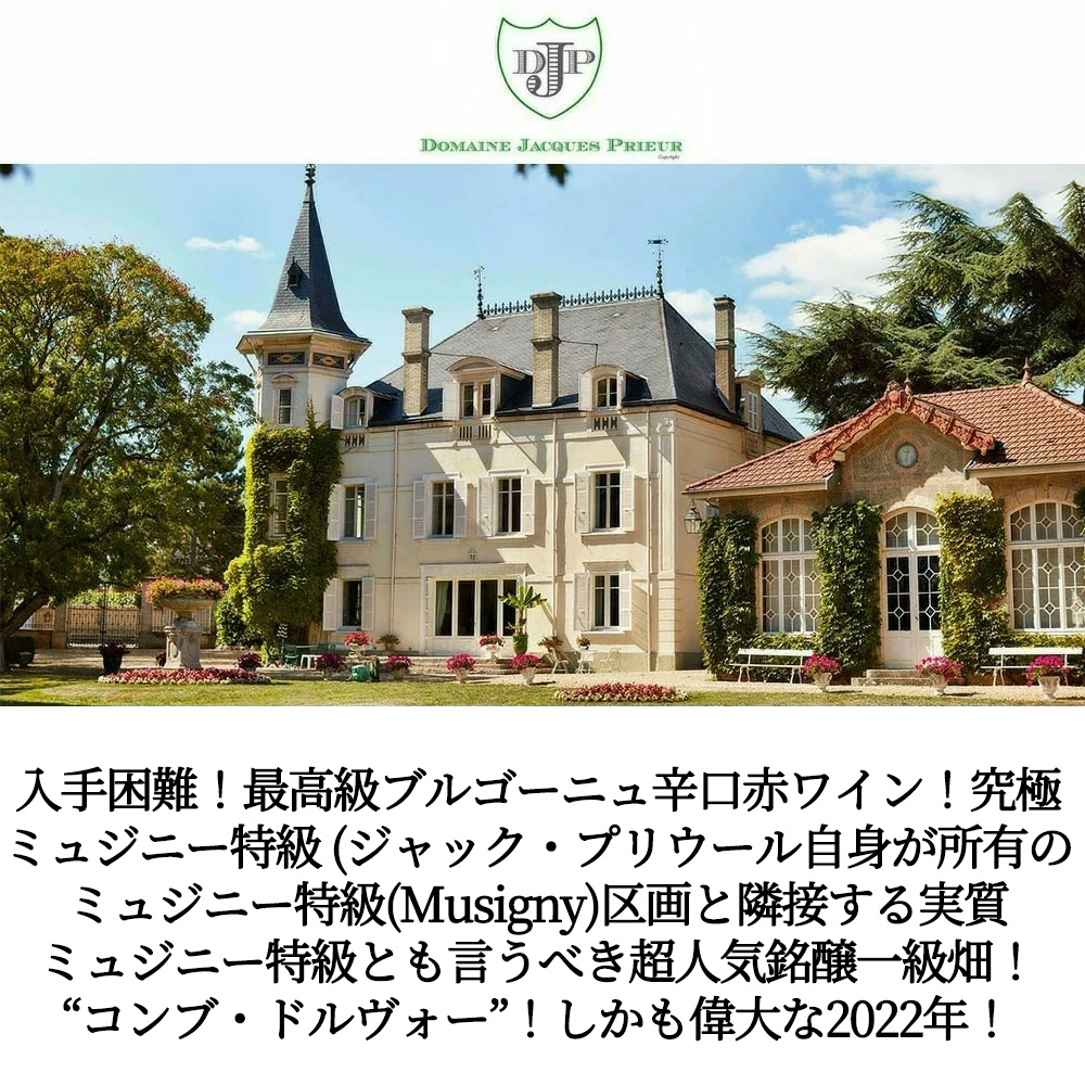 ずばりジャック・プリウール自身が所有のミュジニー特級(Musigny)区画と隣接する実質ミュジニー特級とも言うべき超人気銘醸一級畑!“コンブ・ドルヴォー”!しかも偉大な2022年!もちろん現地のセラー数ヶ月前の蔵出し限定作品で正規品の素晴らしい状態で少量入荷!