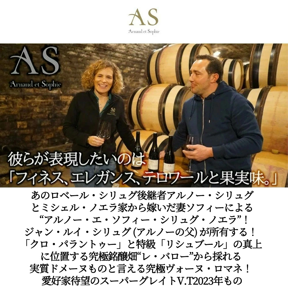 造り手はあのロベール・シリュグ後継者アルノー・シリュグとミシェル・ノエラ家から嫁いだ妻ソフィーによる“アルノー・エ・ソフィー・シリュグ・ノエラ”の新生ヴォーヌ・ロマネ!