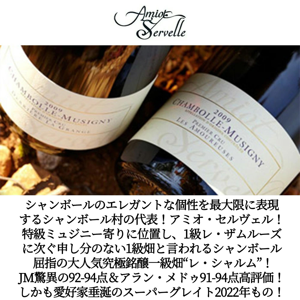 「口当たりは、レースのように繊細で、コート・ド・ニュイで最も女性的な味わい!タンニンはキメ細かく、アロマは火を通したフランボワーズやイチゴなどの赤い果実!熟成とともにスミレやプルーンなどの柔らかいブーケが出る」と言われる、シャンボール・ミュジニー一級!